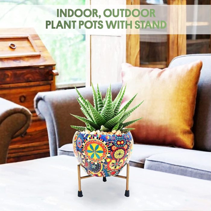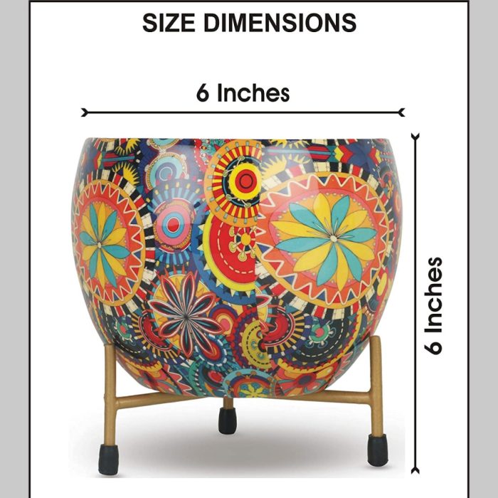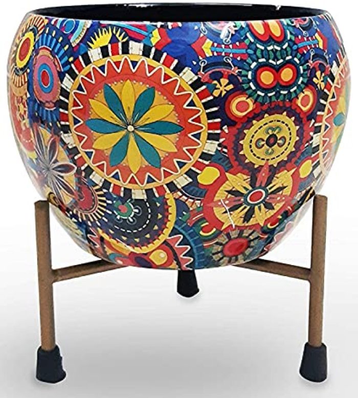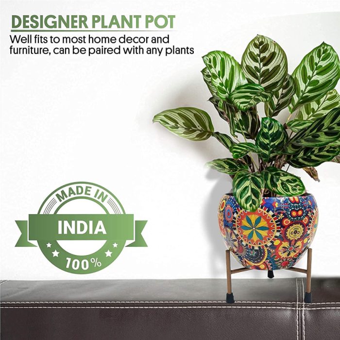 Home Gardening Pots Metal Meena Pot with Stand – Multi Colour