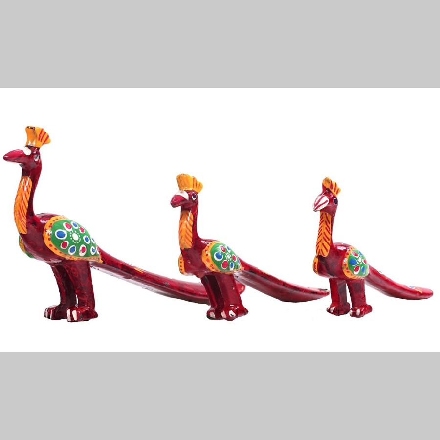 Peacock Set of 3 – Maroon